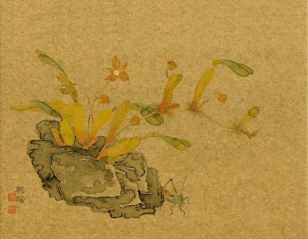 金卡纸没骨花鸟画作品《沐浴清风》